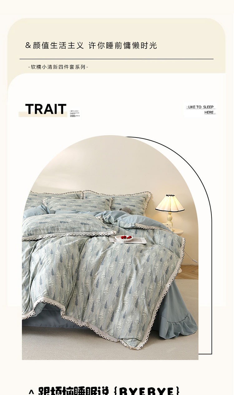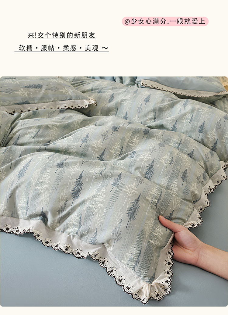 亿瞬间小清新水洗棉花边四件套
