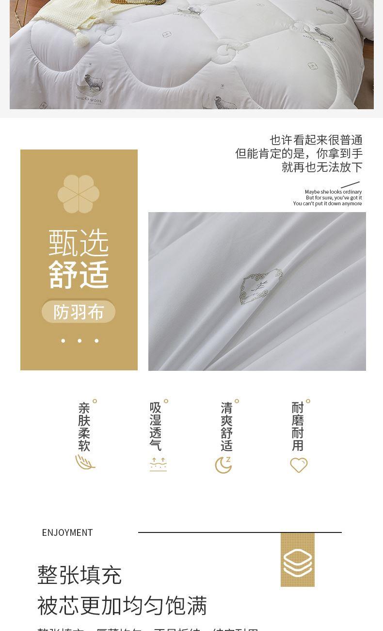 规 格:200×230cm 克重:2900g 面 料:高密防羽布(聚酯纤维) 填 充:60%羊毛/40%羽丝(聚酯纤维) “無印良品”大染无印,优良品质的产品是年轻人喜欢的,“無印”设计, 优雅 , 质朴 , 自然 , 是無印良品的初心与追求。让体验更舒适。享受简约健康生活,走进無印,上善若水,大爱无疆,创新让生活更精彩。