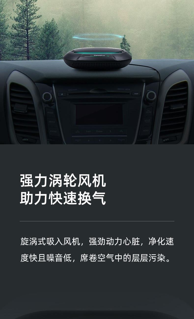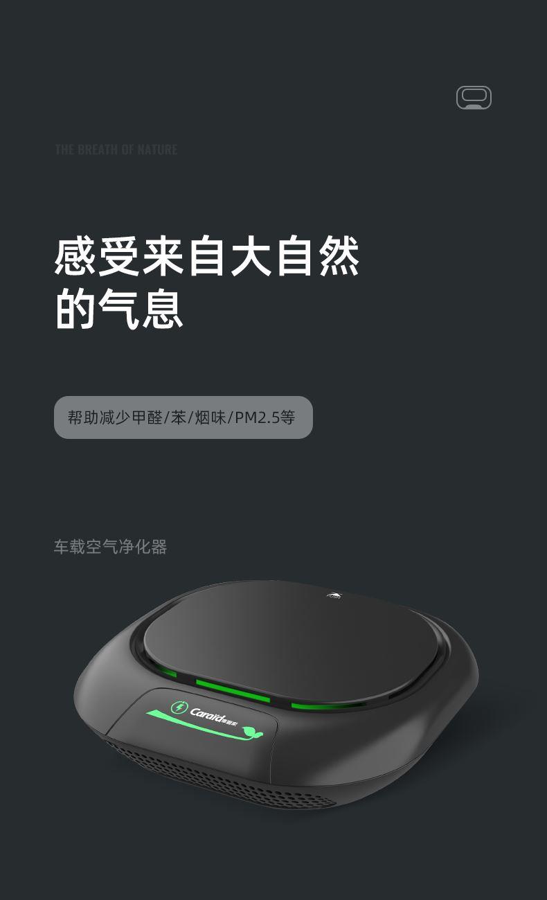 "1、ABS外壳,浑然一体机身; 2、一机多用,除醛,降霾,去味;3、HEPA高精度循环净化,过滤微小颗粒物(PM0.5); 4、三层复合过滤网,迅速净化;5、360度立体环绕进风口,蜂窝网状出风口,空气智能传感器;6、采用椰壳活性炭,约10倍去甲醛效果;7、内置香薰盒,RESET复位键; 8、额定电压:DC12V,额定功率:3.2W,正离子:700万/秒,负离子:1700万/秒,噪音:小于50dB(A)"