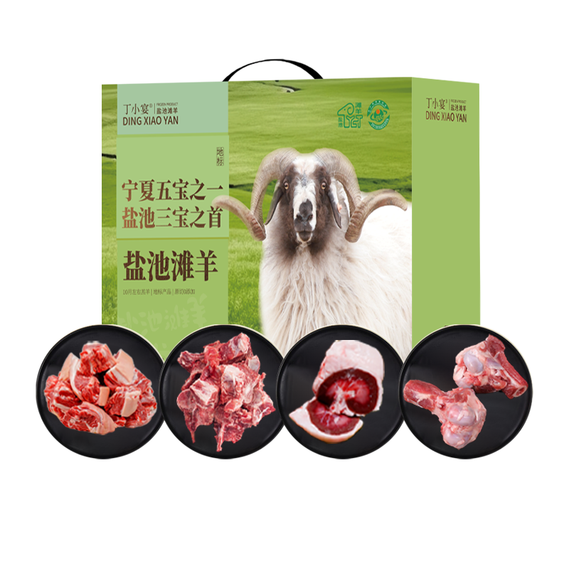 盐池滩羊羊肉切块500gx1袋 盐池滩羊羊脊骨500gx1袋 盐池滩羊带肉羊棒骨500gx1袋 盐池滩羊油包腰500gx1袋 包装(泡沫箱+礼盒)