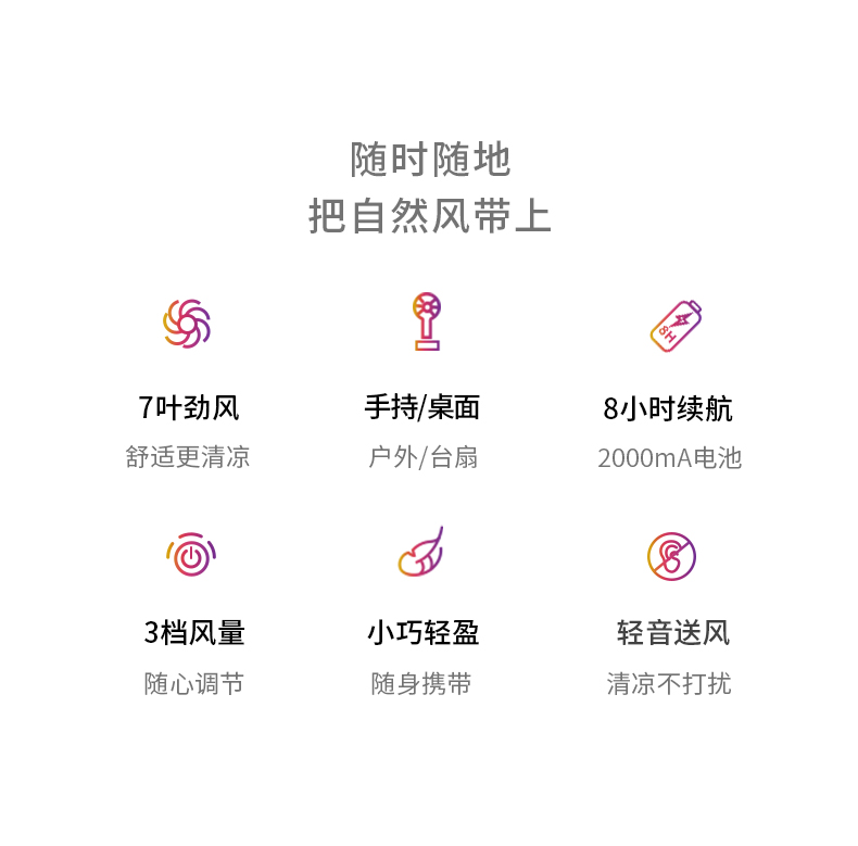 产品规格: 包装尺寸:104 x 51 x 198 mm 商品尺寸:95 x 55 x 190 mm 毛重:0.218 kg 产品特点: 这款电风扇采用5V直流电,节能环保,符合RoHS标准 50Hz频率运行,风力强劲且稳定 小巧便携,适合多种场景使用 静音设计,让您在安静的环境中享受清凉。