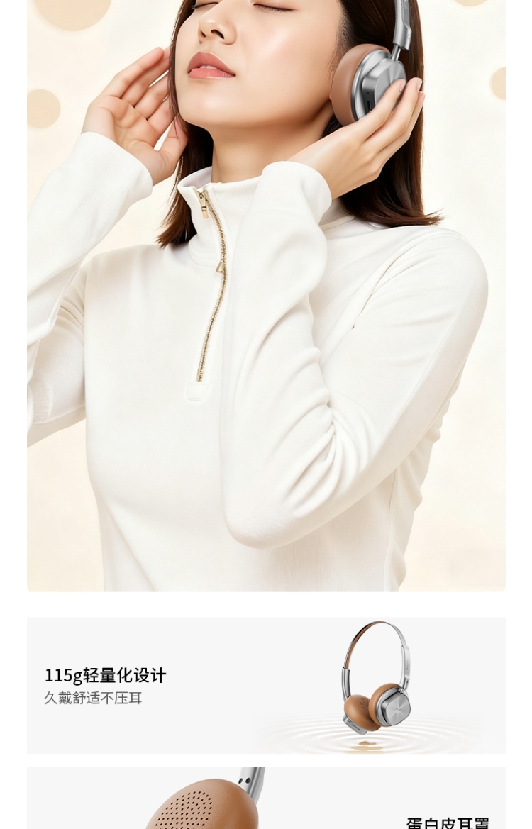 115g轻量设计,久戴不压耳,特制吸音棉,大声不漏音