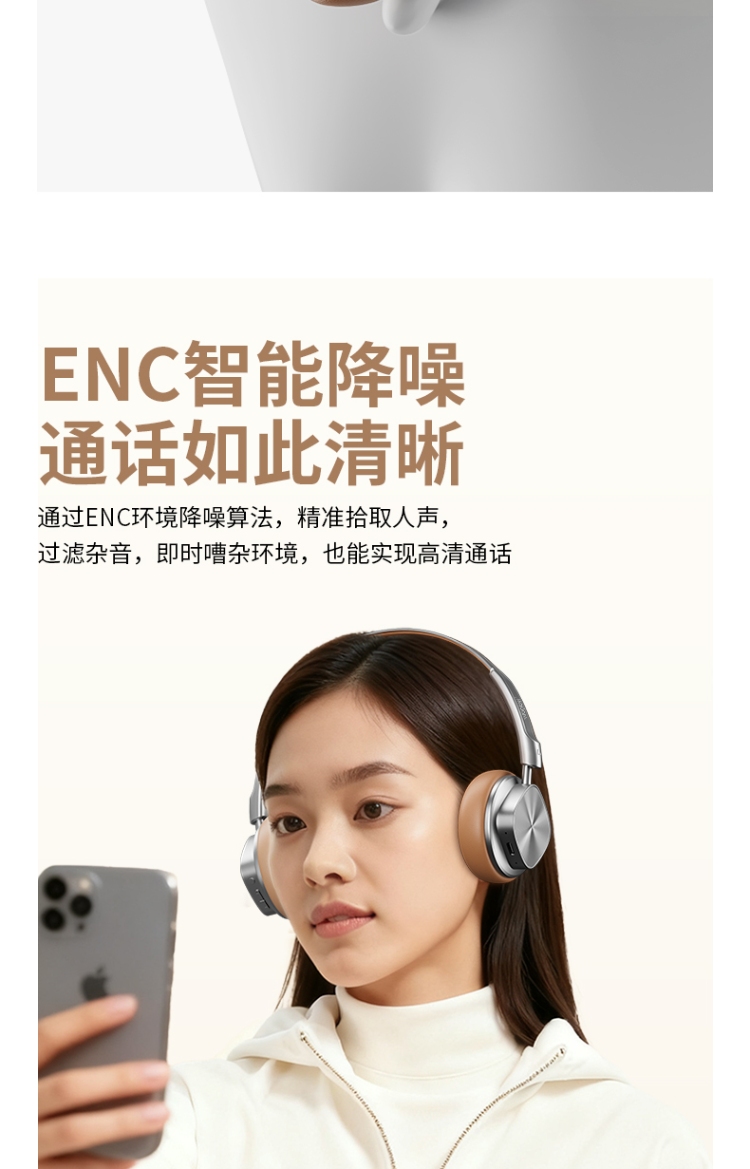 ENC智能降噪,通话清晰,简易按键,便捷操作。