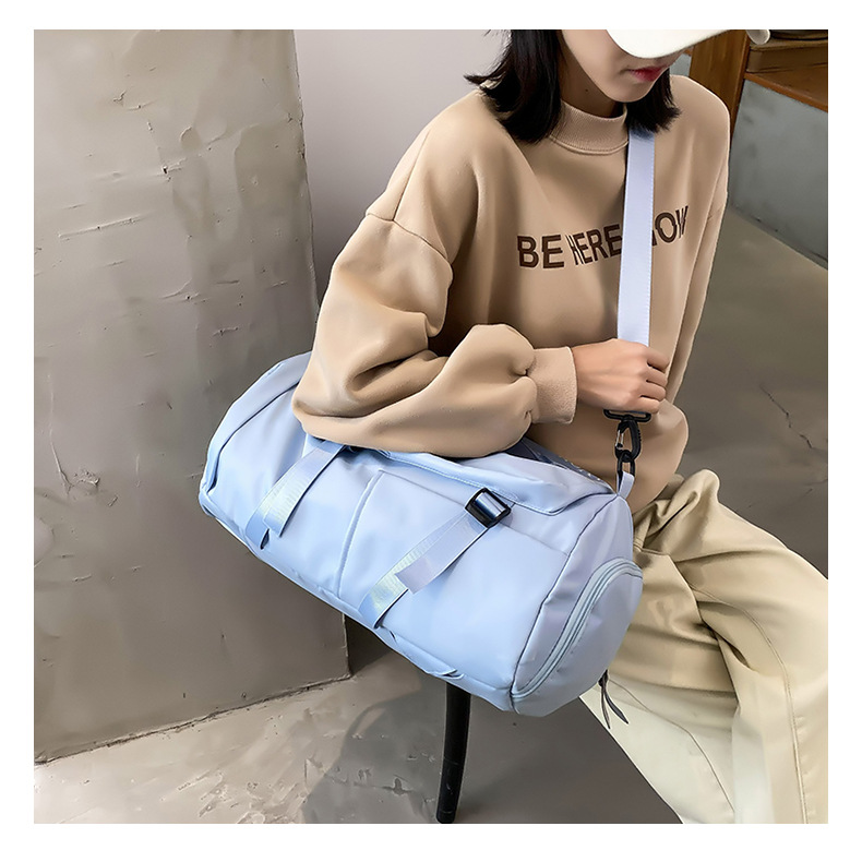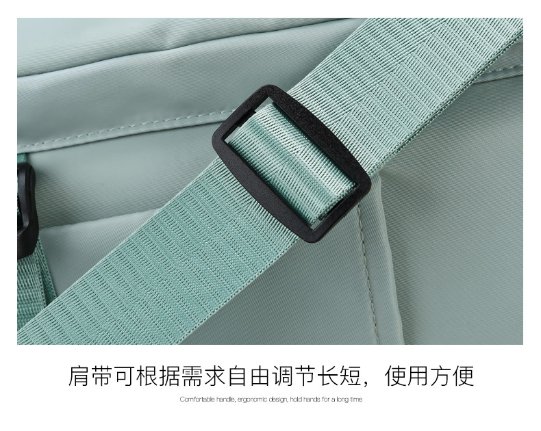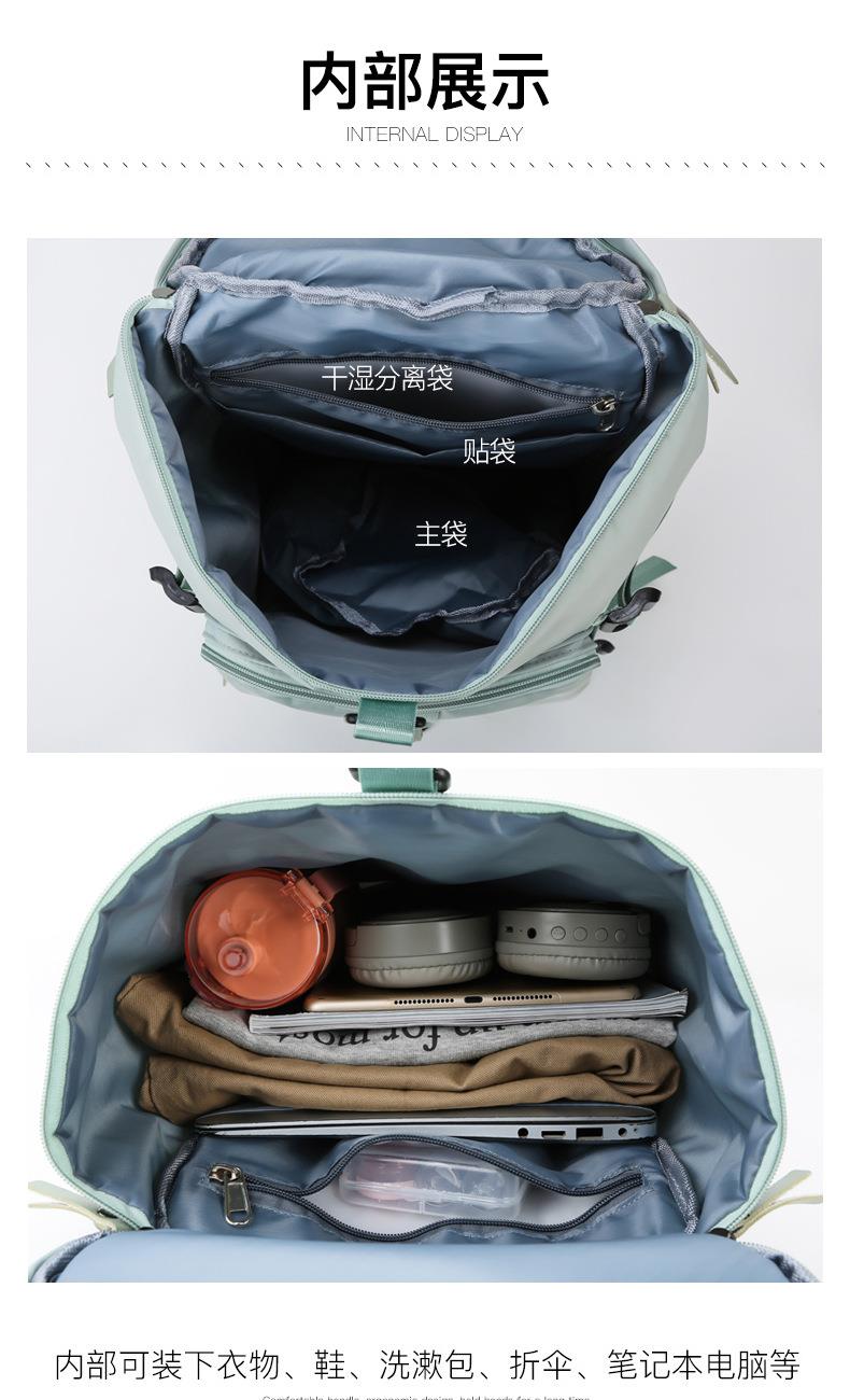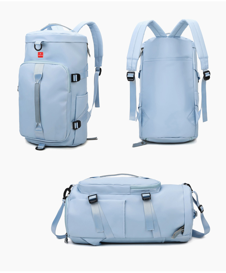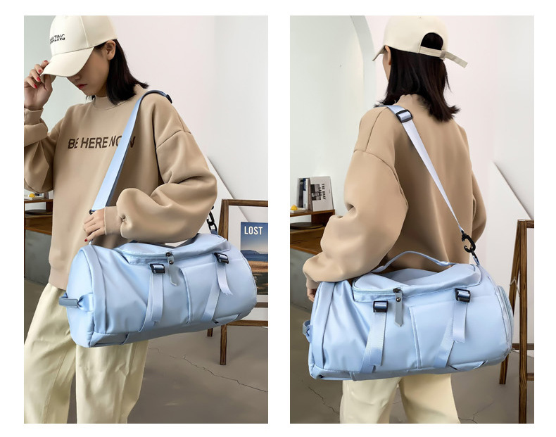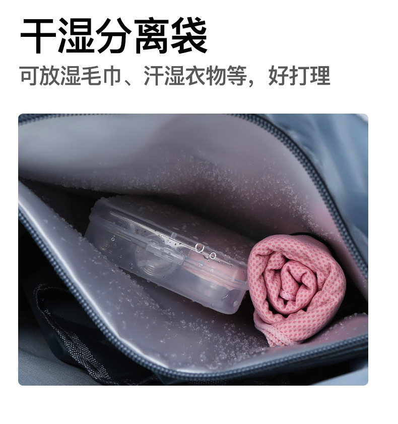 货号: 8810 规格:46*25*25cm 颜色:粉色/蓝色/果绿色/黑色/紫色 ★主面料 牛津布泼水面料 ★可背、可提两用设计 ★采用高品质扣具,能承受各种恶劣外部环境的考验 ★内部干湿分离设计,方便您的运动健身 ★方便的前袋设计,可方便的放置一些小物品 ★可调节长度背带,适合各类身材人群,让您的旅途无忧,同时不失时尚 ★内部大容量空间,鞋子专用存储仓