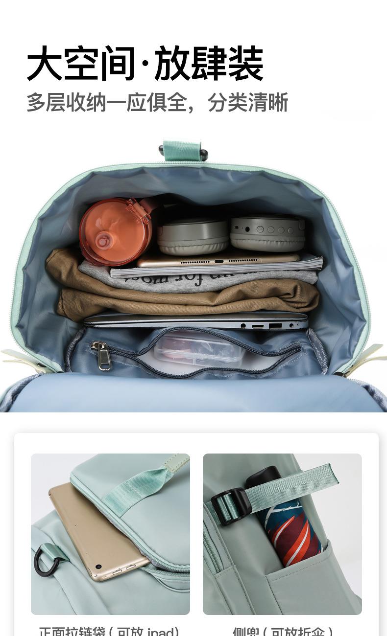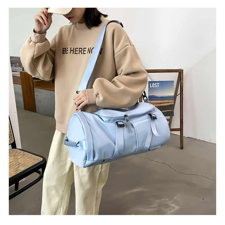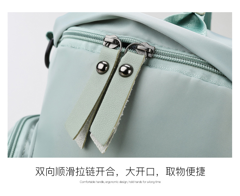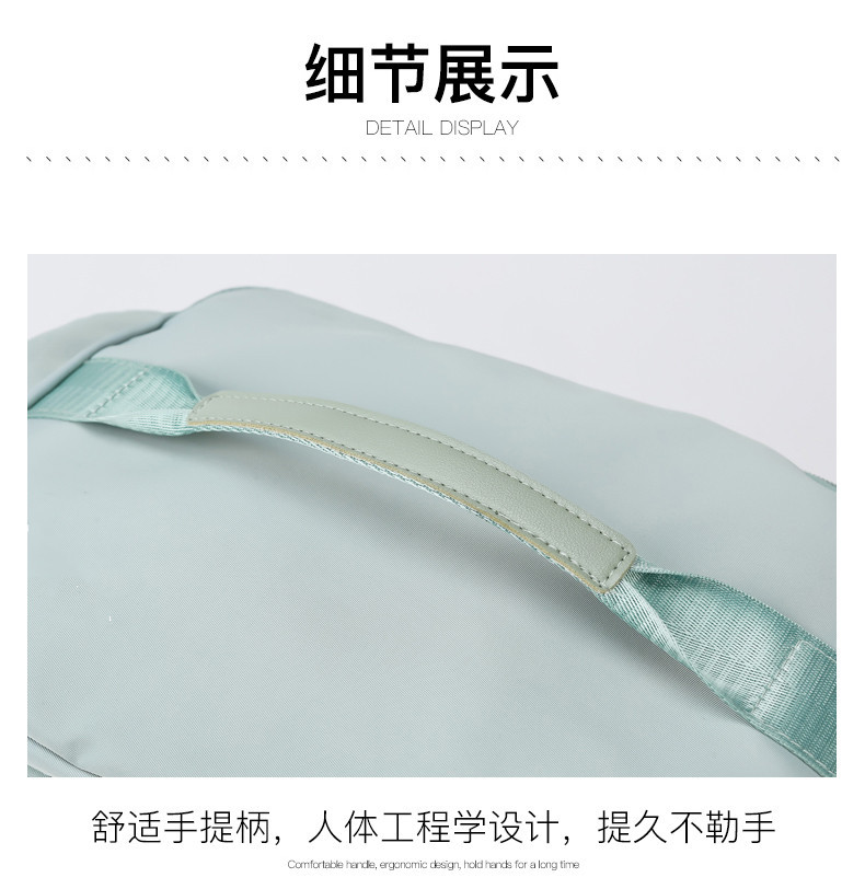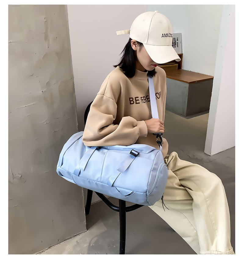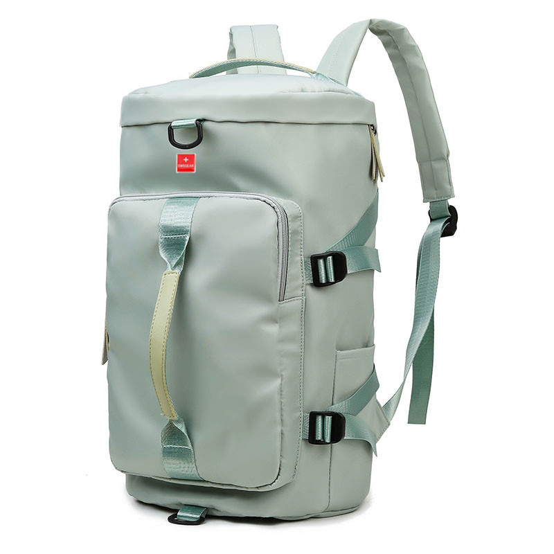货号: 8810 规格:46*25*25cm 颜色:粉色/蓝色/果绿色/黑色/紫色 ★主面料 牛津布泼水面料 ★可背、可提两用设计 ★采用高品质扣具,能承受各种恶劣外部环境的考验 ★内部干湿分离设计,方便您的运动健身 ★方便的前袋设计,可方便的放置一些小物品 ★可调节长度背带,适合各类身材人群,让您的旅途无忧,同时不失时尚 ★内部大容量空间,鞋子专用存储仓