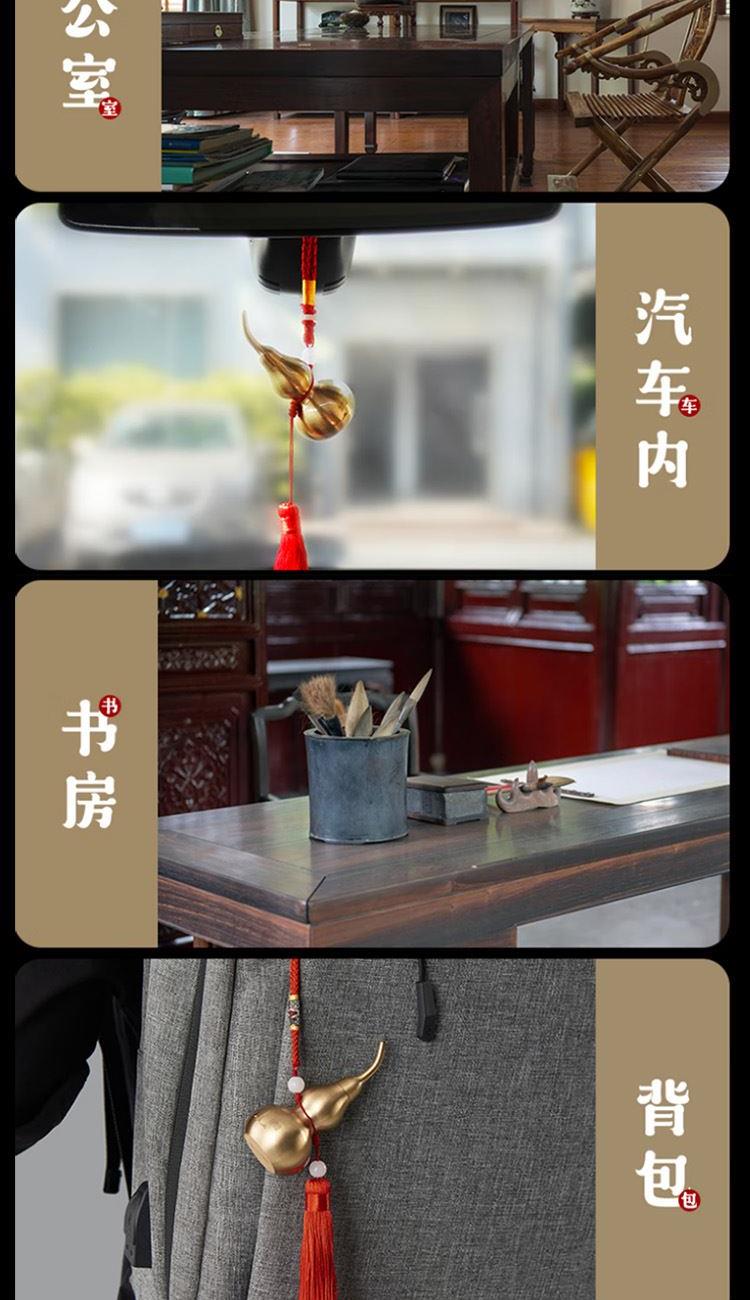 福禄双全: 既是“福”也是“禄”,寓意着既有福气享受生活,又有财禄支撑生活,事业财富双丰收。 平安顺遂: 挂在汽车内后视镜上或作为钥匙扣随身携带,寓意保佑出行一路平安,化解旅途险阻。 镇宅辟邪: 挂在门窗附近或家中不利的方位,寓意着化解室外煞气(如路冲、尖角),吸收家中的负能量,守护家宅安宁的愿景。