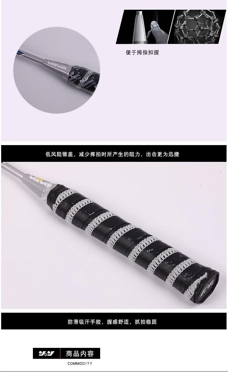 一只仿皮包 一对碳铝一体球。碳铝材料球拍,更有韧性和耐用。球拍尾部特设减震带可有效防滑,减少磨损
