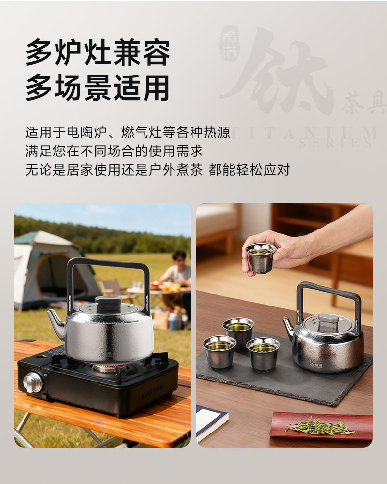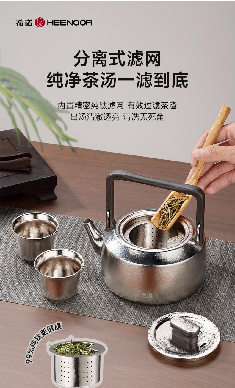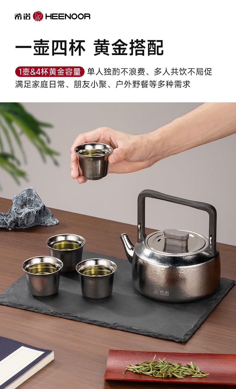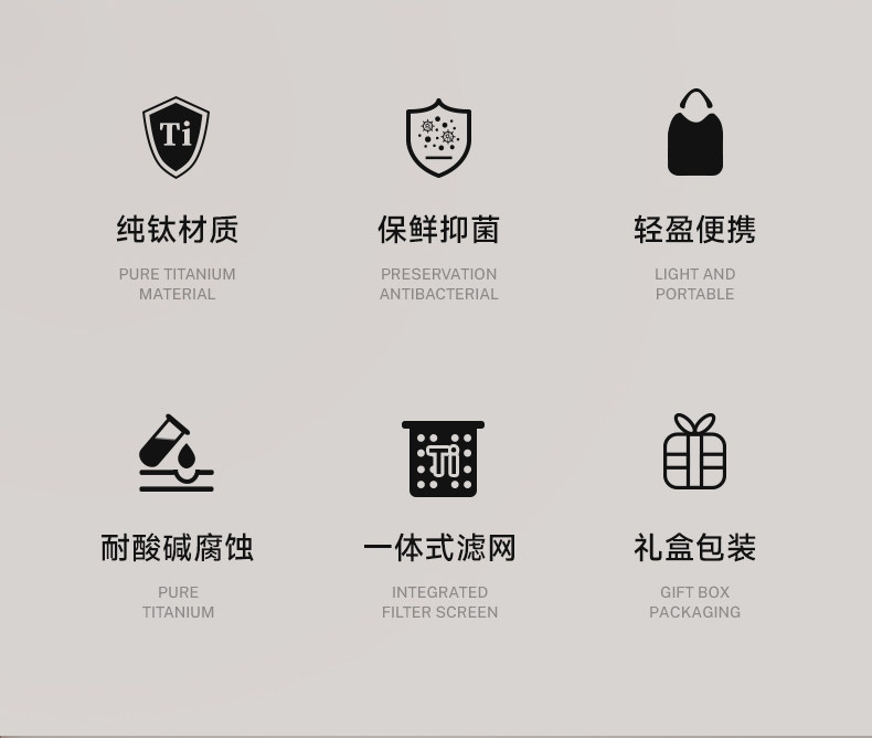材质: 内胆-钛/杯身-钛 颜色:云海雾凇 套组明细:乾坤壶+品茗杯*4 附加组件:茶漏 容量:乾坤壶T111 210ml/品茗杯T113 30ml