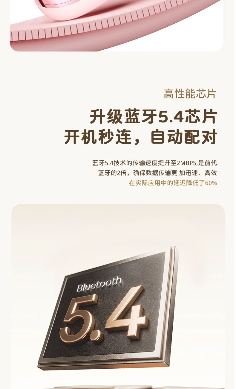 6.升级蓝牙5.4,功耗低信号更稳定、视频和游戏同步传输,无感延迟,拒绝卡顿;