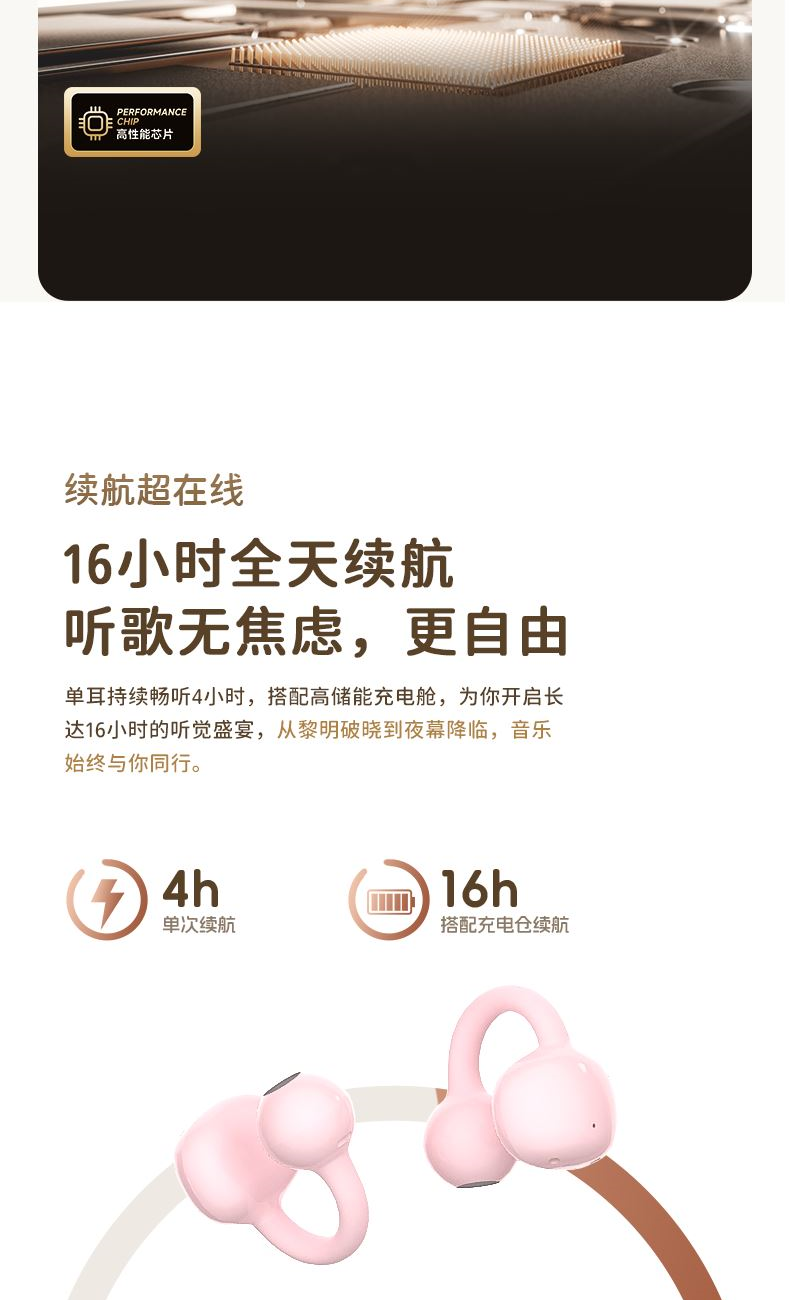 3、轻量化设计,符合人体工学的0感佩戴感觉,开放式设计,定向聚音技术,安全舒适;