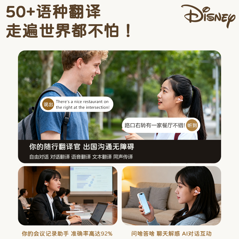迪士尼奢华TWS夹耳式智能AI翻译蓝牙耳机DN25