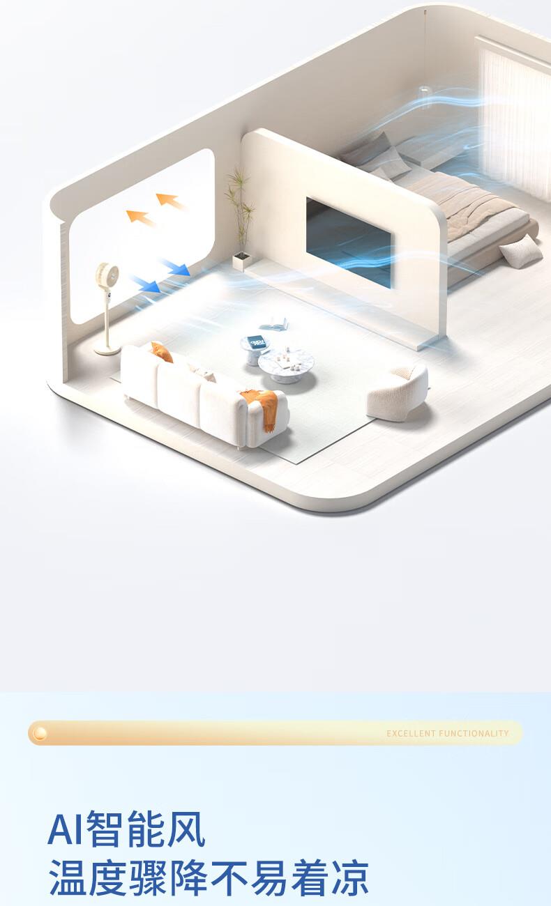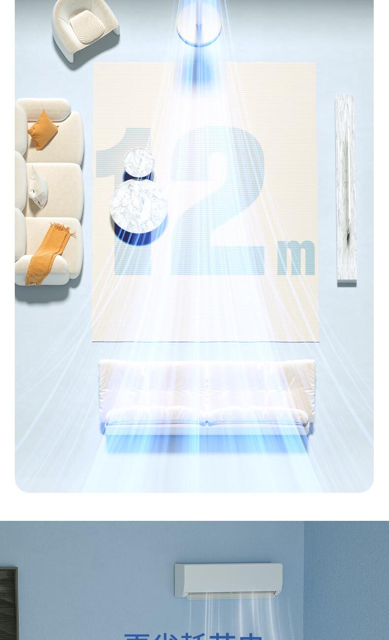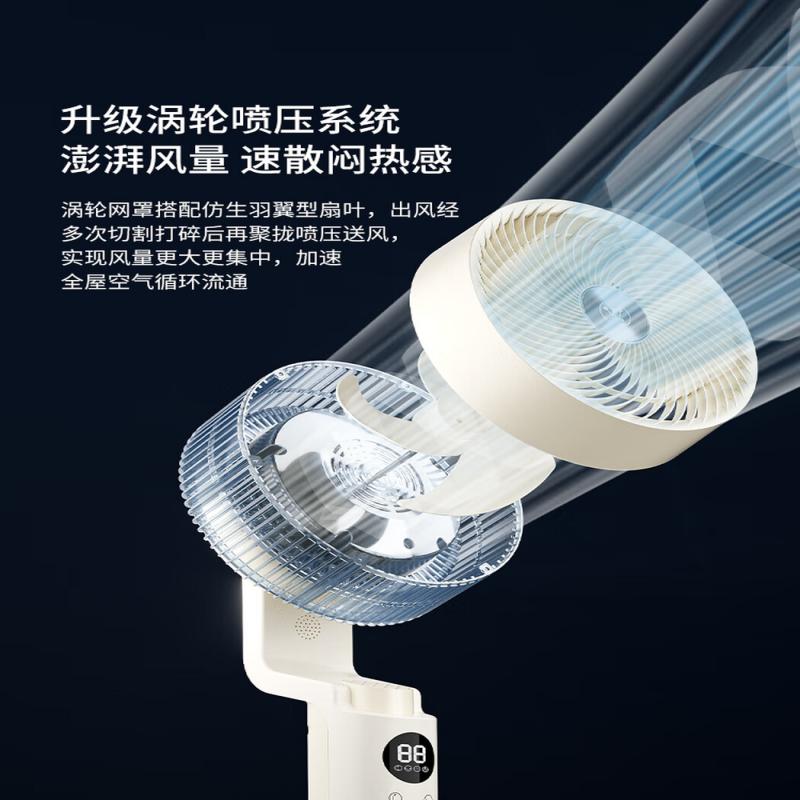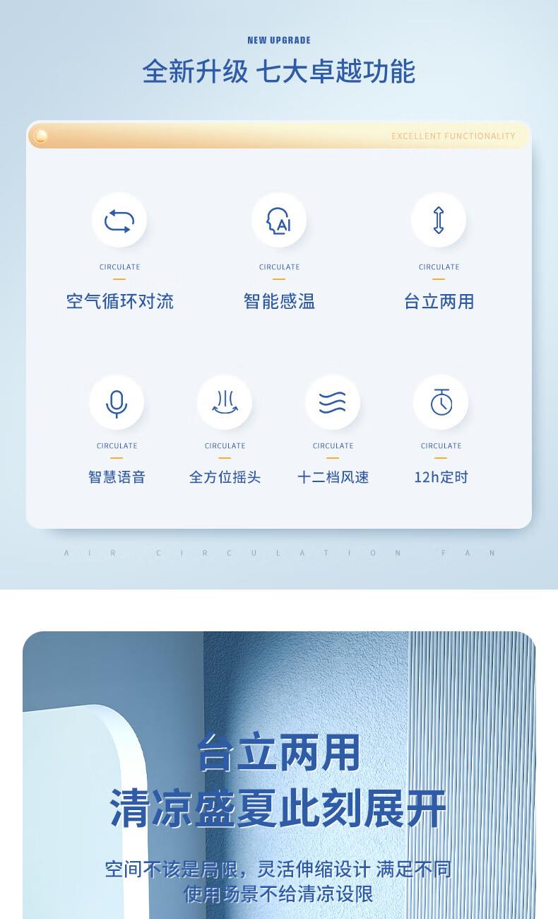 型号:WTH-XH020 功率:35W 控制方式:智慧语音/触屏/遥控/手机小程序 风速档位:12档 产品尺寸:300*300*1098mm 12档风速调节; 智能语音交互; 3D摇头送风 12h预约定时 台立两用 内置香薰盒