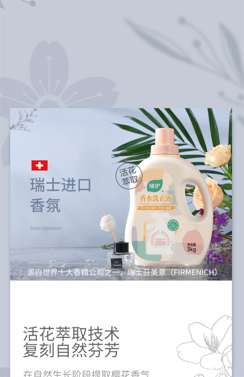 植护初夏樱花香水洗衣液3kg/瓶