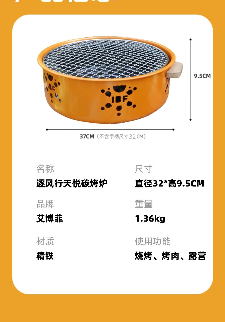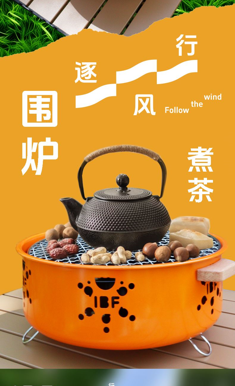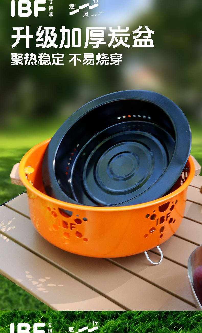 实木手柄小心机,防烫+高颜值两手抓!单手就能拎着走,移动烤摊营业啦!