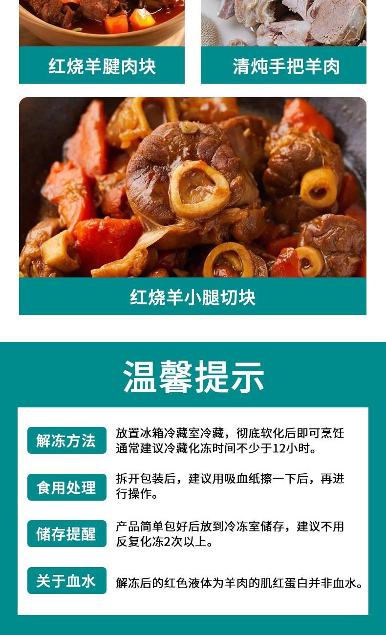 内蒙原切羊腱肉1000g*1 内蒙原切手把羊肉1000g*1 内蒙原切带骨羊小腿1000g*1