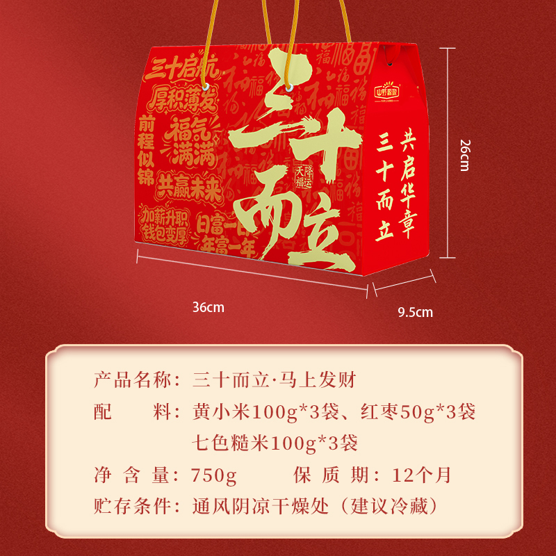 三十而立马上发财五谷杂粮礼盒时来运转马上暴富小米七色糙米红枣