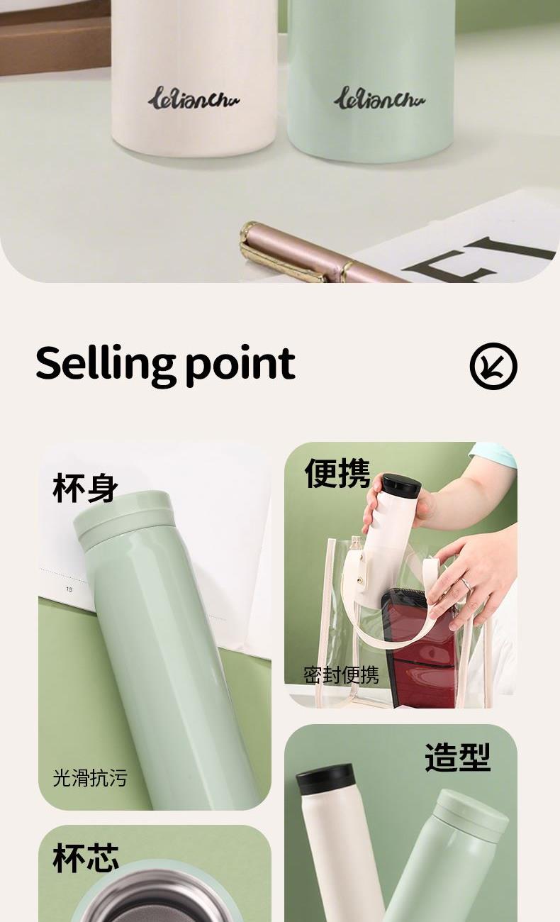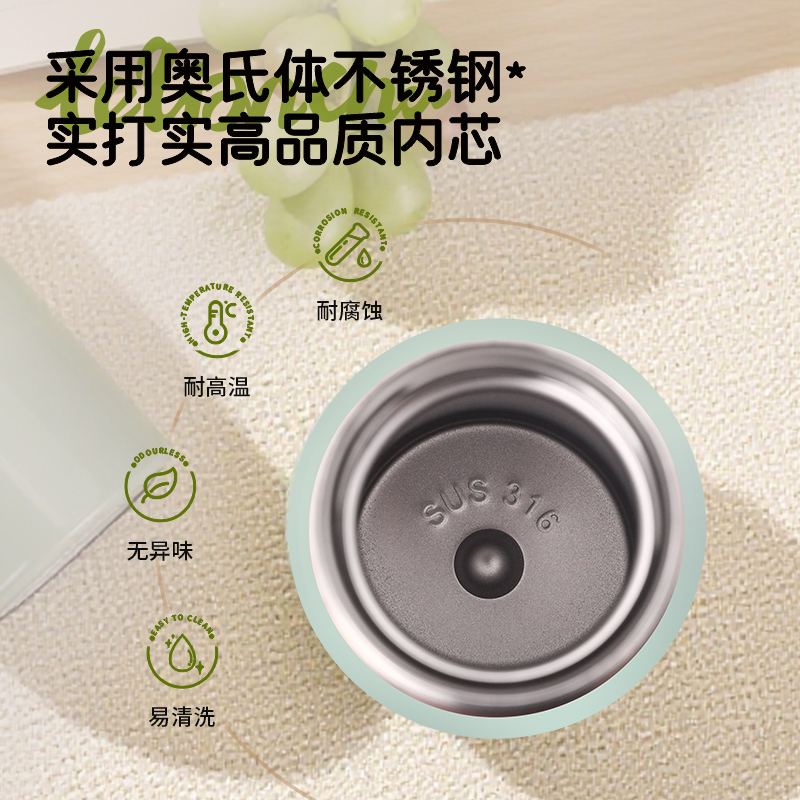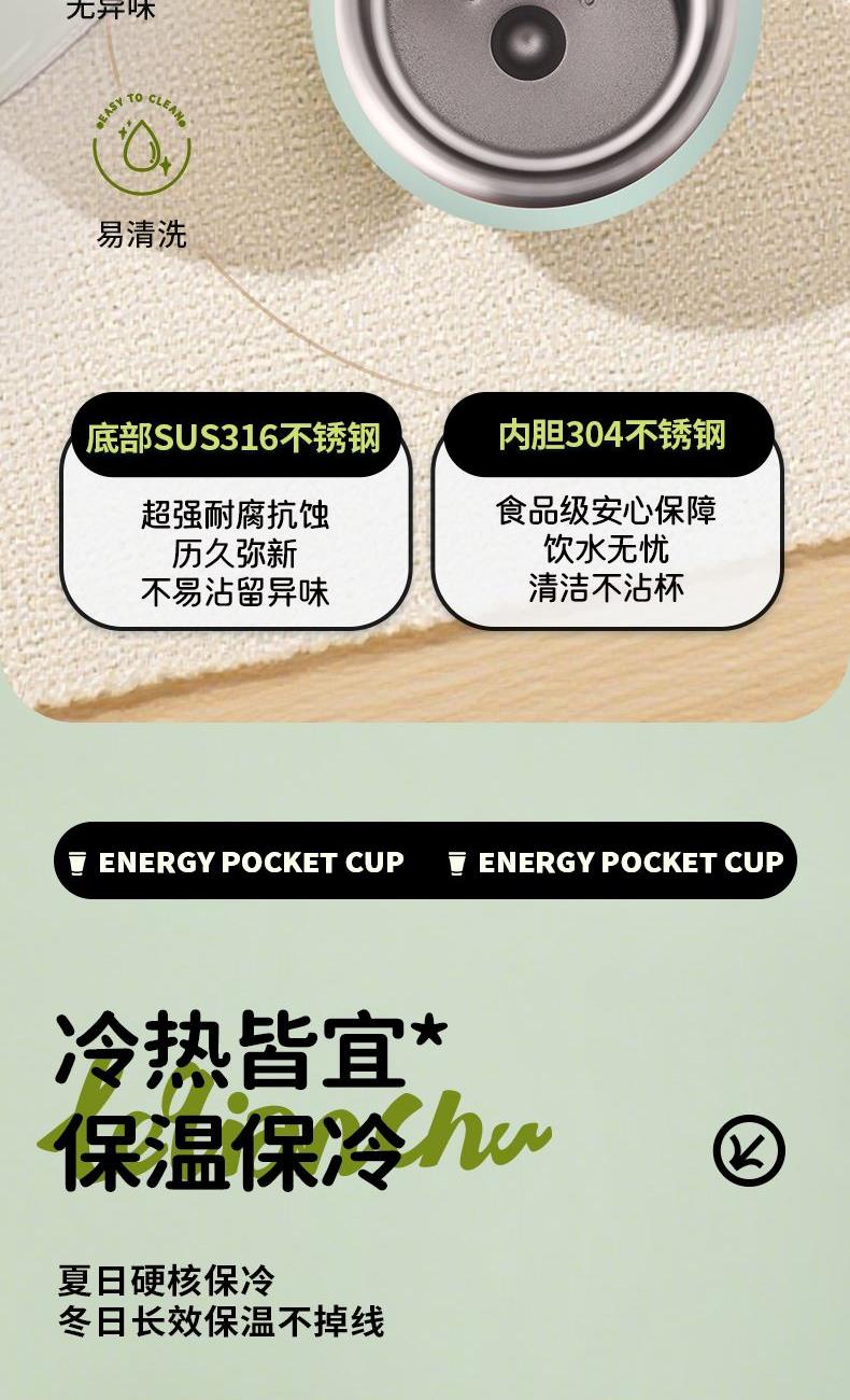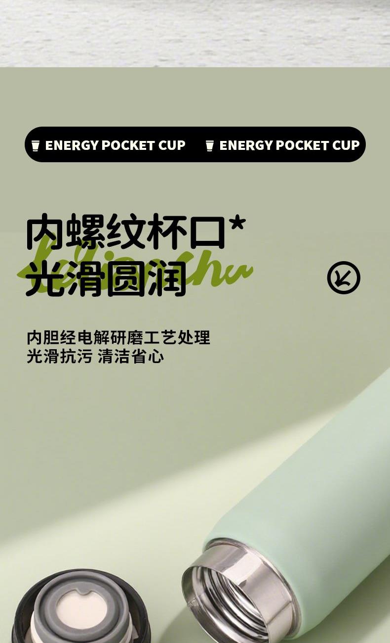 材 质:杯底SUS316 内胆SUS304 容 量:300ml 彩盒尺寸:6*6*19 外箱尺寸:61*31*40 1. 304不锈钢真空胆身,锁温持久,寒冬热饮常暖; 2. 内胆经电解研磨工艺处理,光滑抗污,符合食品接触标准,清洁省心; 3. 极简杯身线条利落,造型简约不失设计感,轻量便携适配多场景;