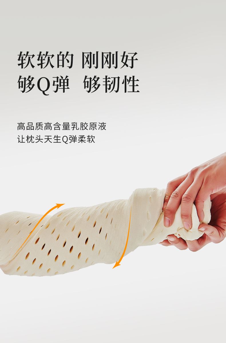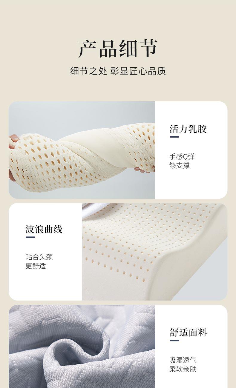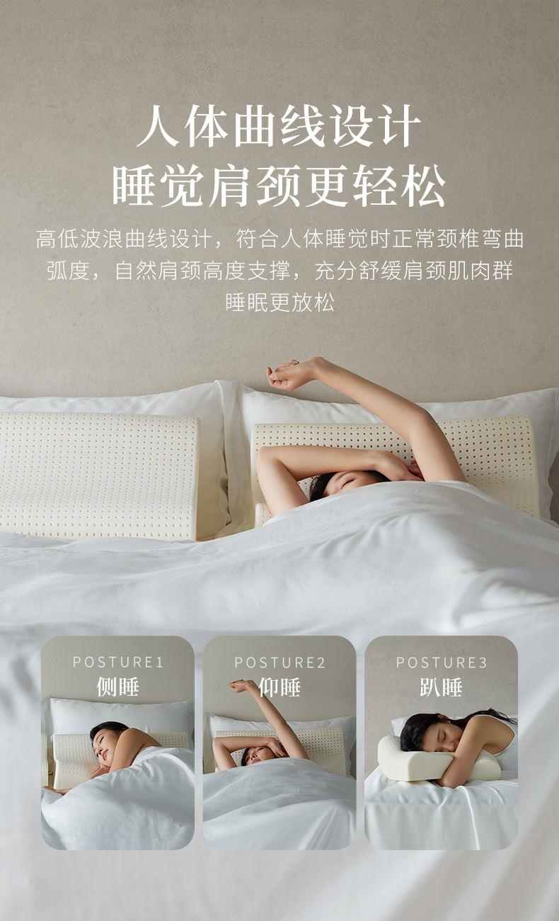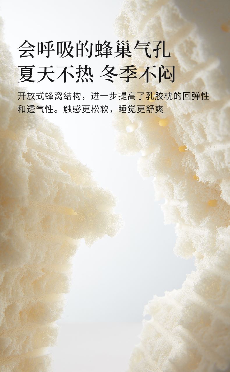 特性优势:乳胶枕质地柔软高弹性,触感舒适,人体工学设计,有效贴合头部、颈部提供均匀支撑。内部具有丰富的蜂窝装气孔结构,促进空气流通,使内部保持干爽,减少细菌和虫滋生。