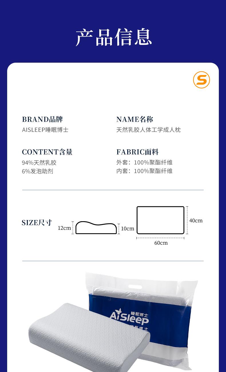 睡眠博士天然乳胶人体工学成人枕对装