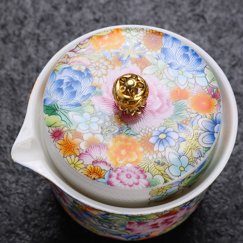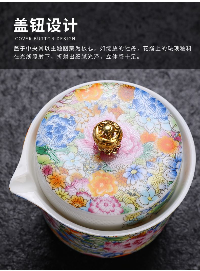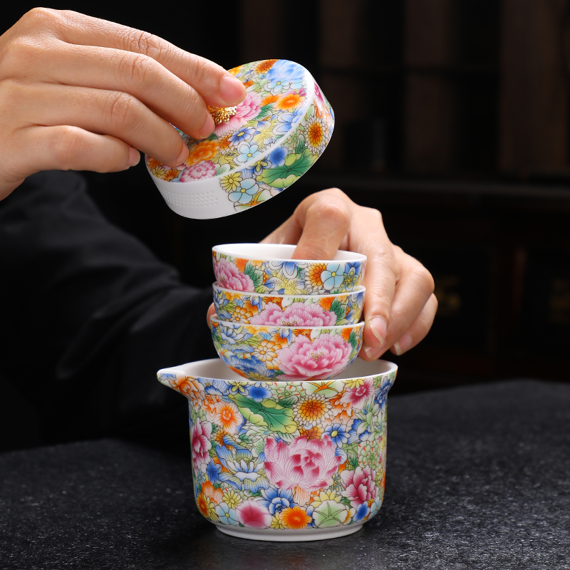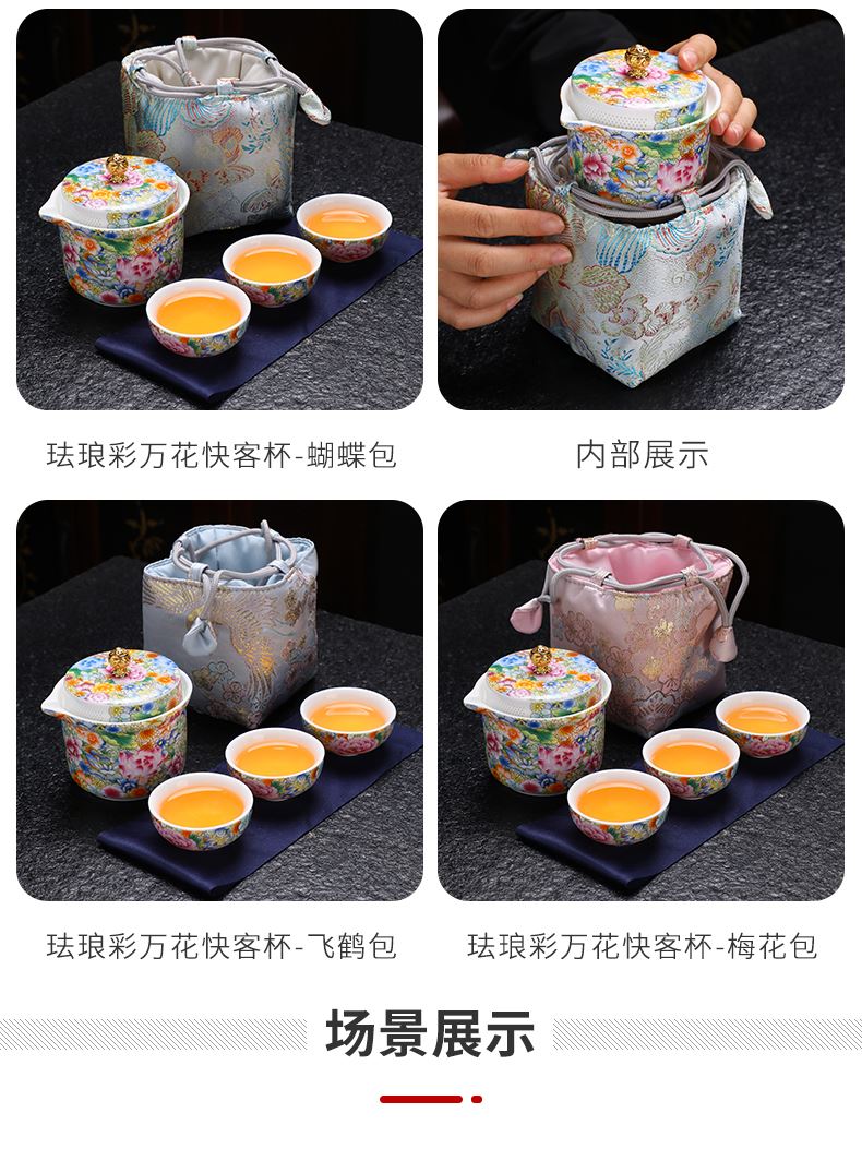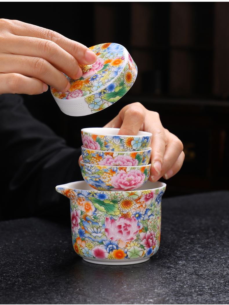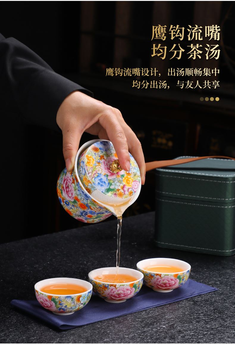瓷语花香女神节万花珐琅彩旅行茶具套装