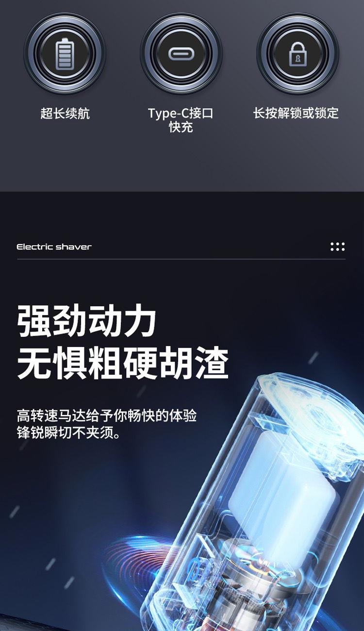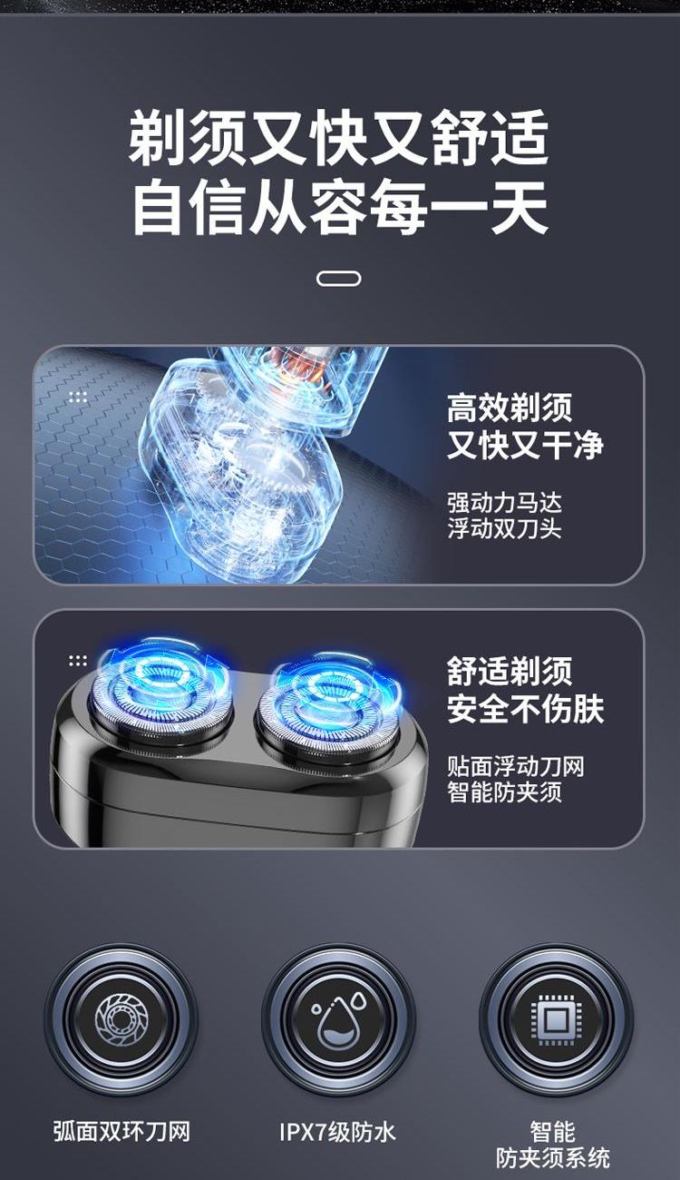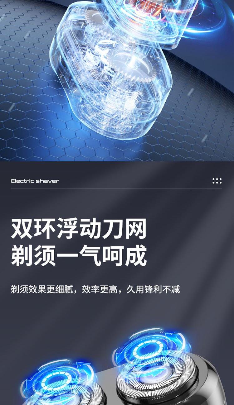 1、双环浮动刀网,剃须效果更细腻,效率更好,久用锋利不减;