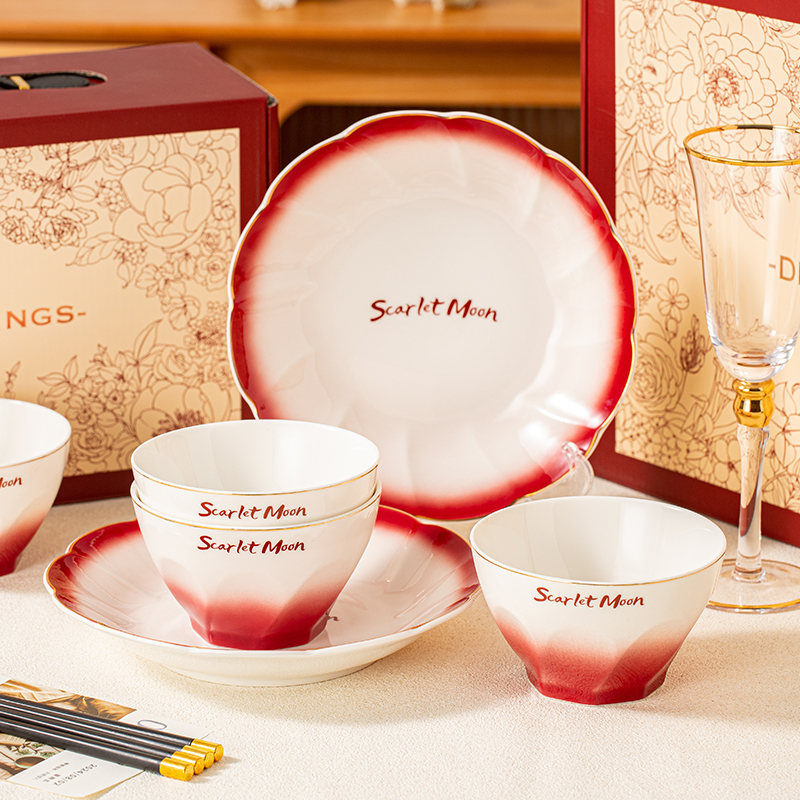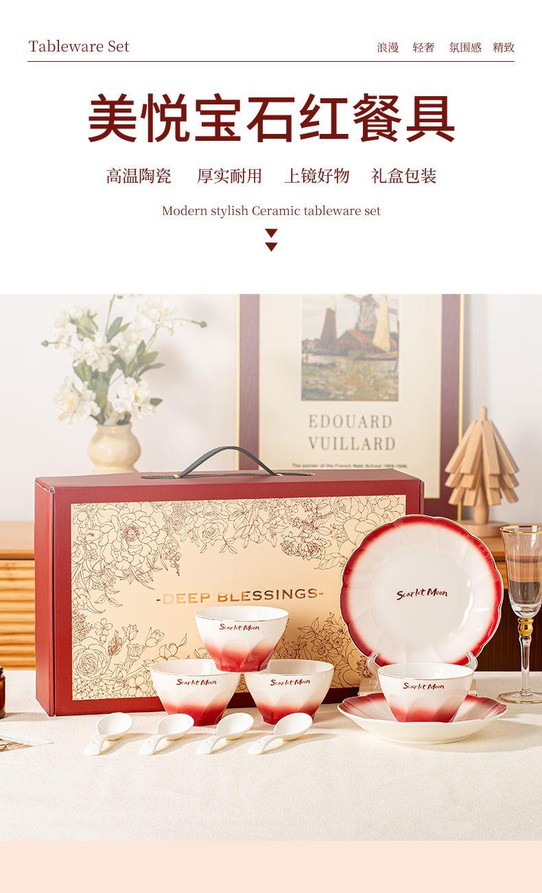 瑾明礼-美悦-宝石红-4碗4勺2盘