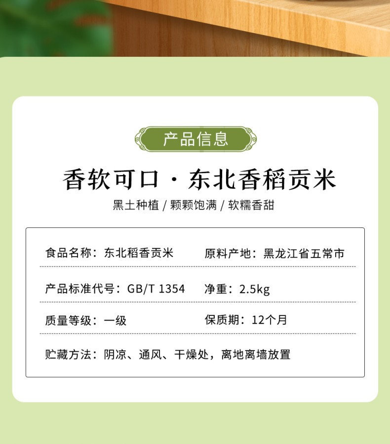 规格:2.5公斤 产品标准代号:GB/T 1354 质量等级:一级 米种:东北小町香米 保质期:12个月 尺寸:240*265*73mm 精选优质贡米,米粒均匀,色泽光亮,老人孩子都喜欢吃!来自“稻米之乡之一”的黑龙江。