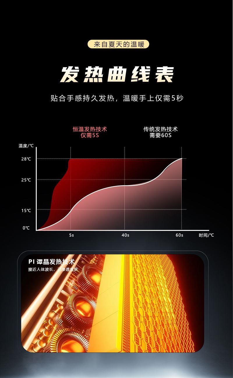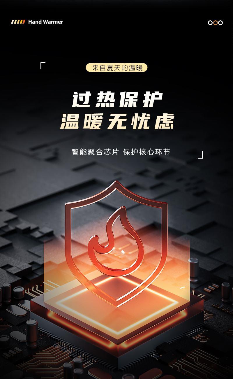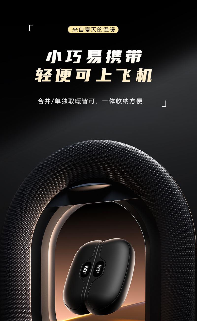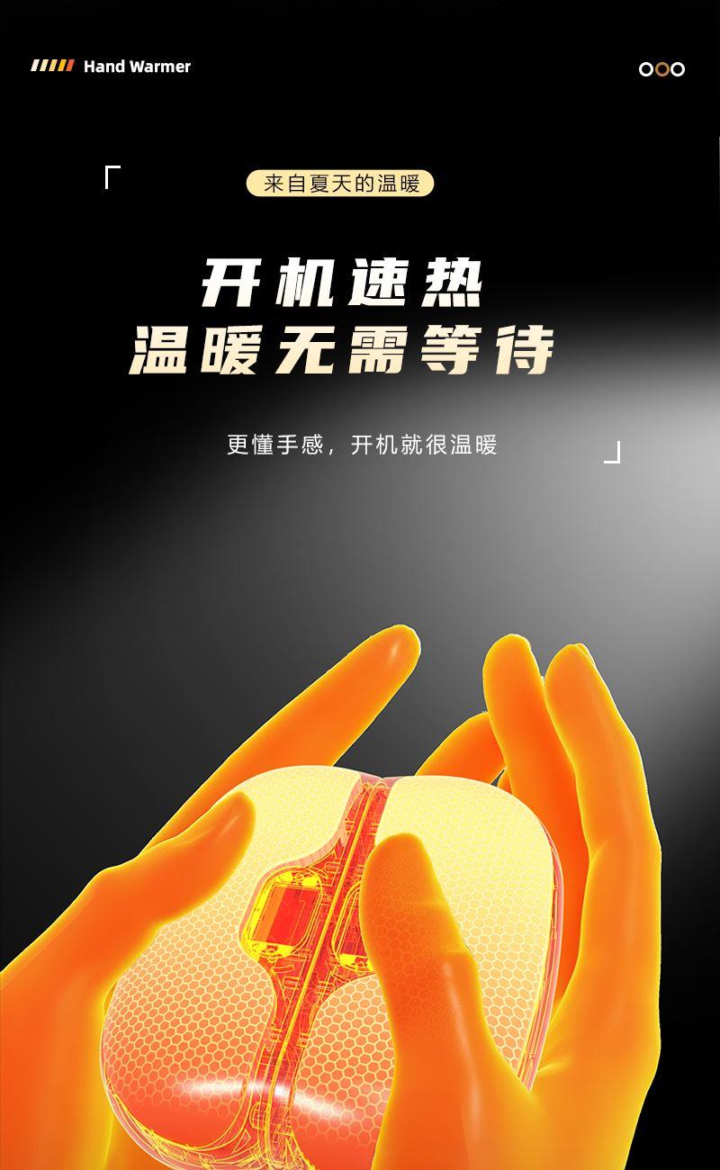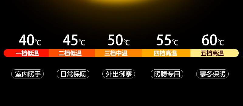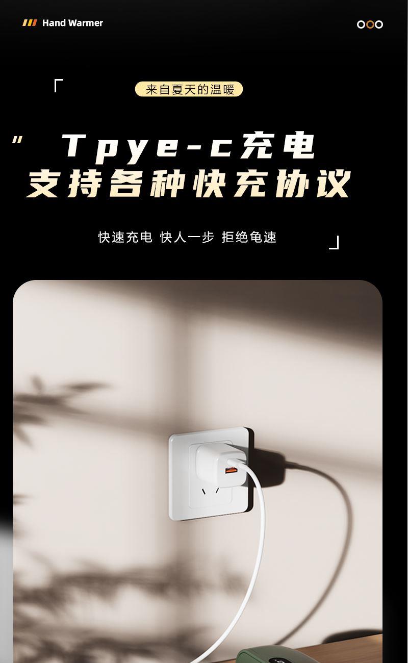 产品材质:ABS塑料+太空铝 产品尺寸:8.5*2.6*7.4cm 产品颜色:黑色 绿色 白色 净 重:145g 输入电流:5V/2A 电池容量:4800mAh 功 率:5w 使用时间:3-7小时 产品特点: 创意设计 可随意拆解 过热保护 温暖无忧虑 快速升温 温暖无需等待 智能高清显数 五档温度可调节
