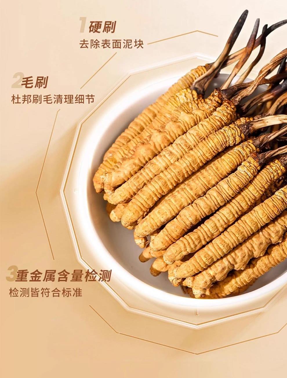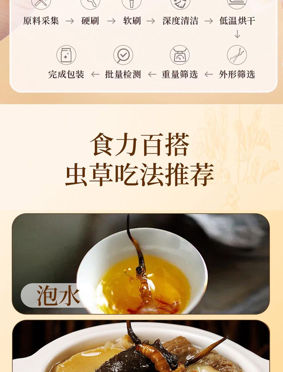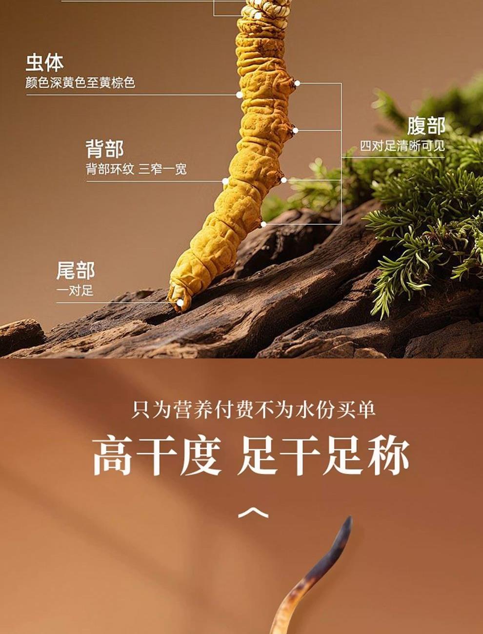 规格:6克(约24支) 卖点: 西藏是冬虫夏草的重要产区,那里的高海拔环境,如雪山、草地,昼夜温差大,紫外线强烈。这种独特的生态环境造就了冬虫夏草的高品质,它生长在这样严酷的条件下,积累了丰富的营养成分。
