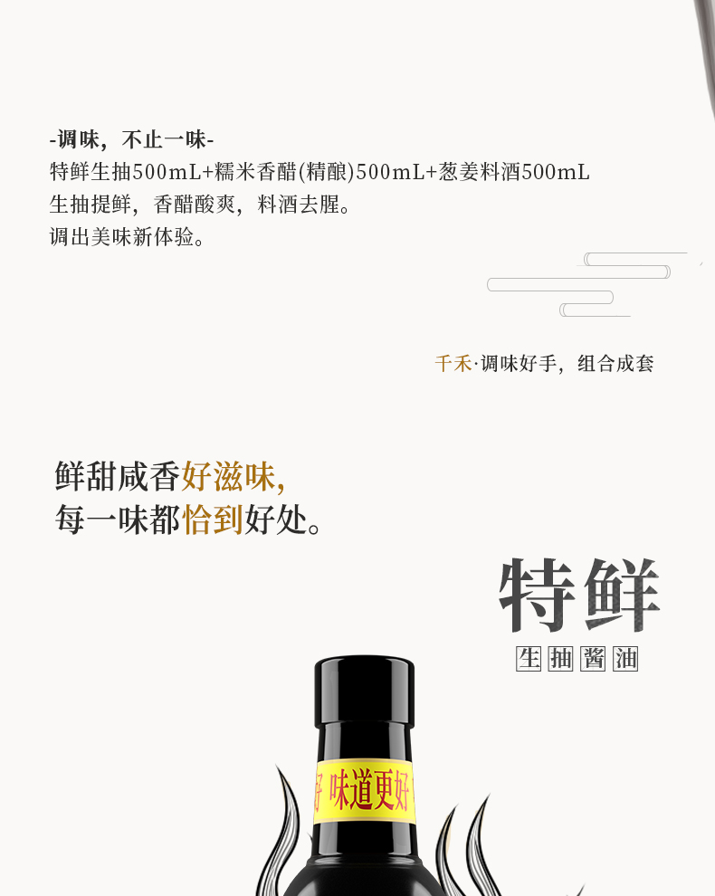 千禾福沁本鲜礼盒1500ml,内配: 千禾特鲜生抽酿造酱油500ml 千禾糯米香醋精酿500ml 千禾葱姜料酒500ml