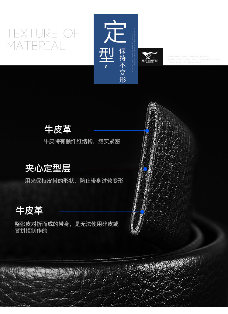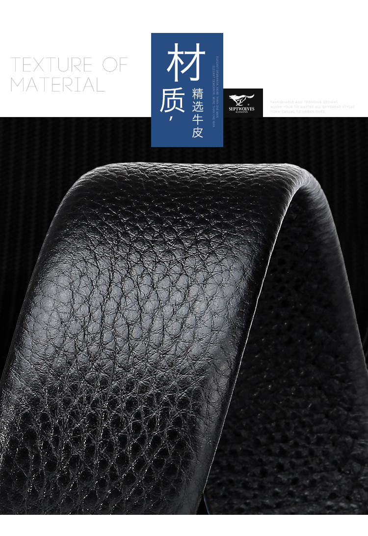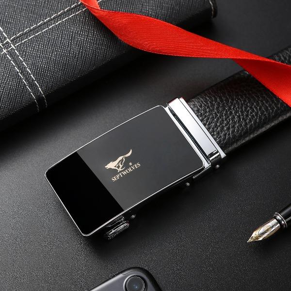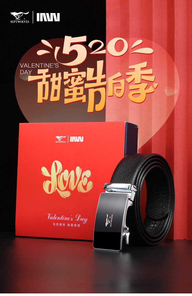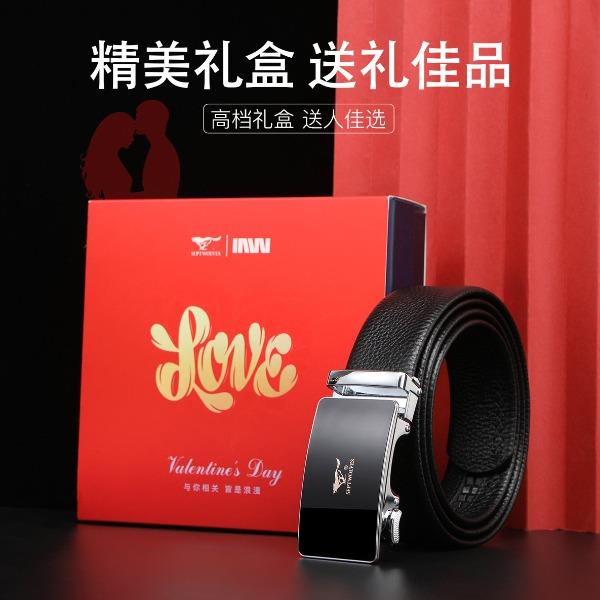 工艺:光面 带扣:自动扣 主体材质:头层牛皮 带扣材质:合金 风格:通勤风 商务风 宽度:3.5CM 送爱人,送长辈,送男士 时尚设计扣头,经典个性,简约百搭,磨砂背扣,材质柔软,手感舒适,经典狼标LOGO 代写贺卡,传递心声,精美礼盒,送礼佳品