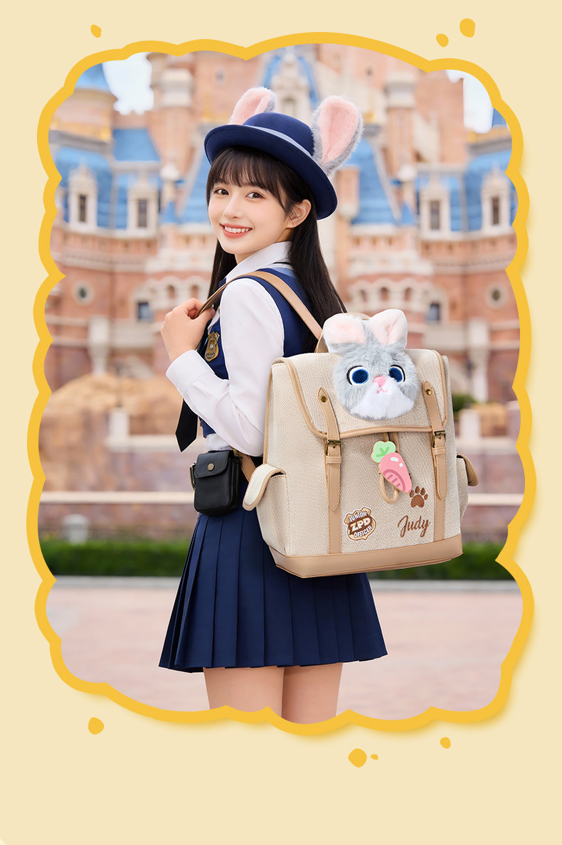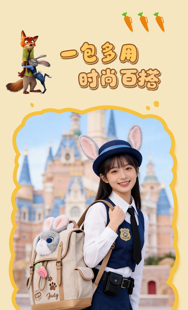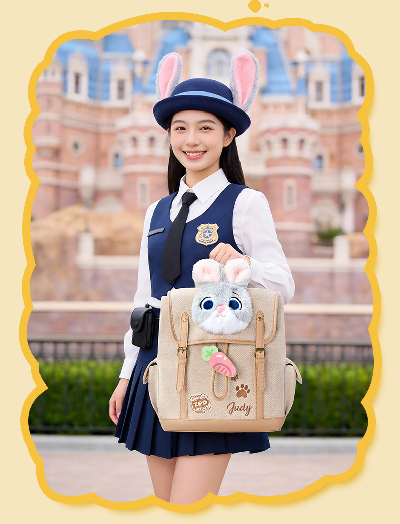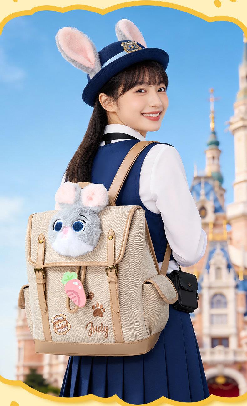 迪士尼疯狂动物城复古双肩包可爱毛绒书包高品质B26262