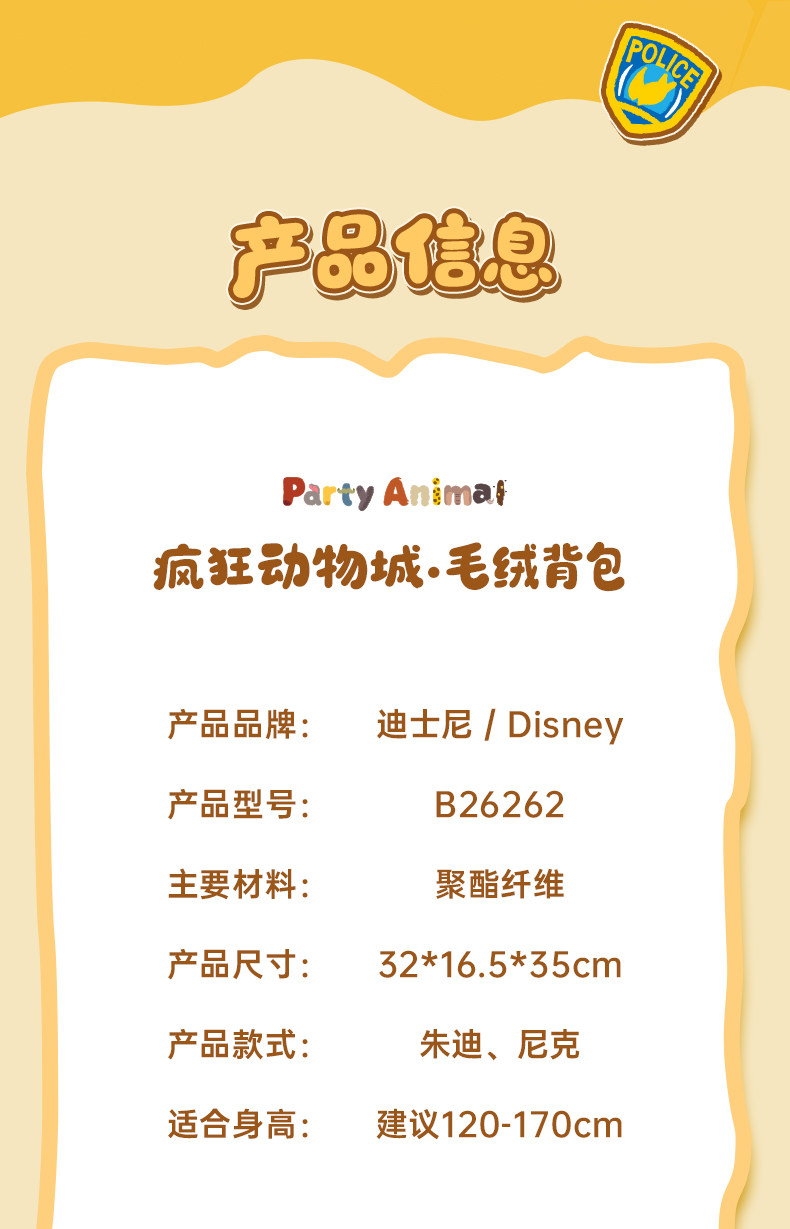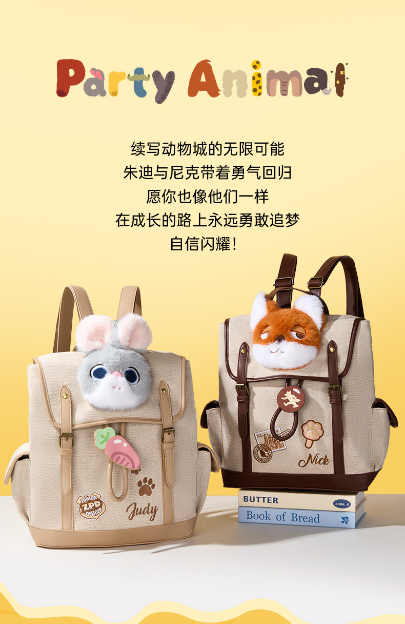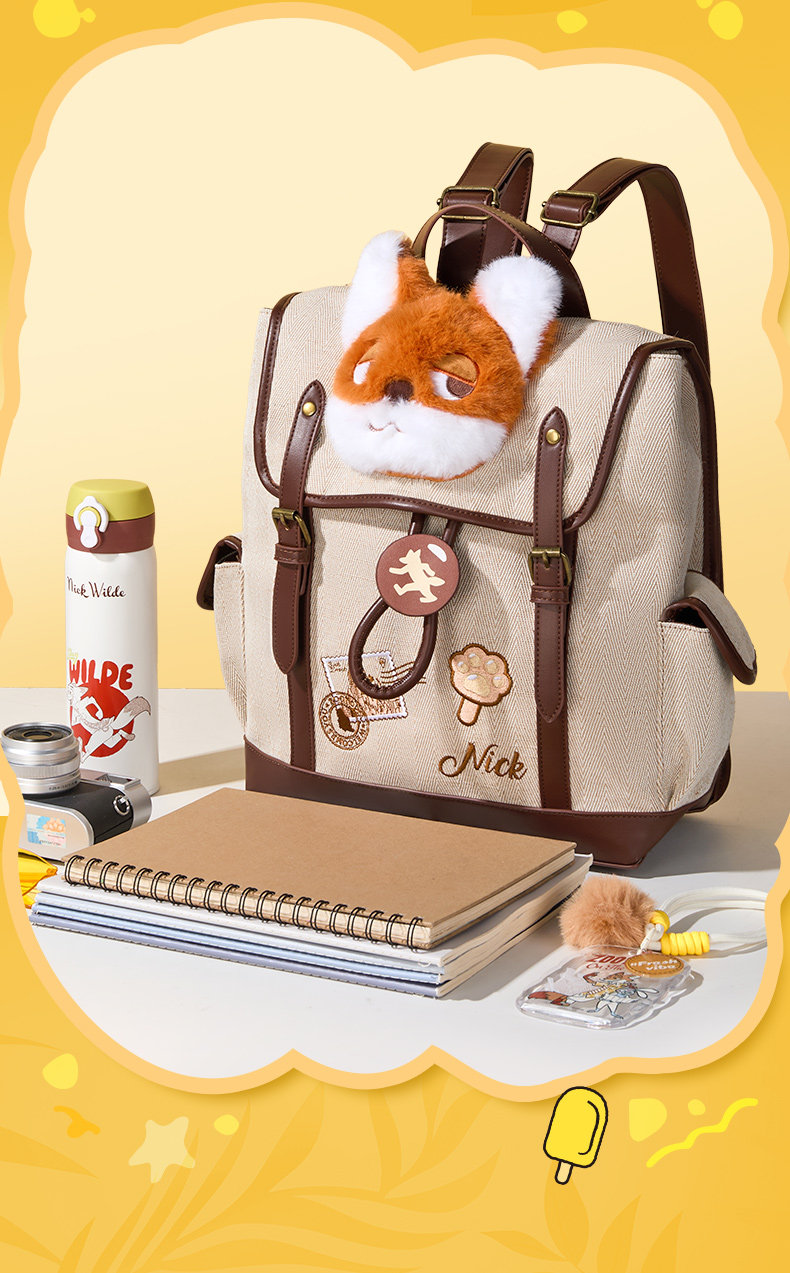 迪士尼疯狂动物城复古双肩包可爱毛绒书包高品质B26262