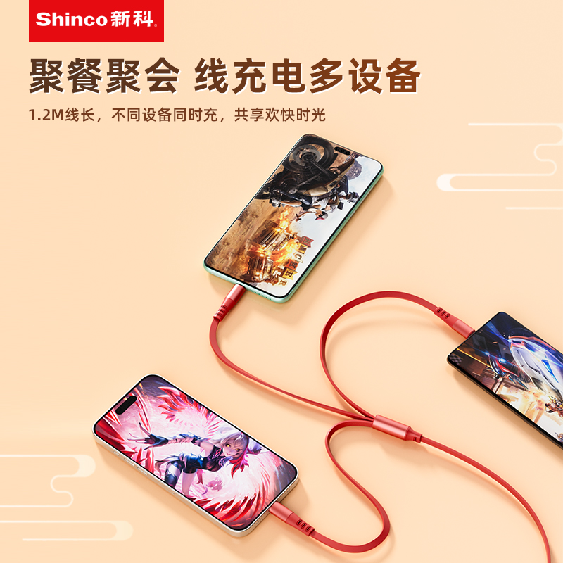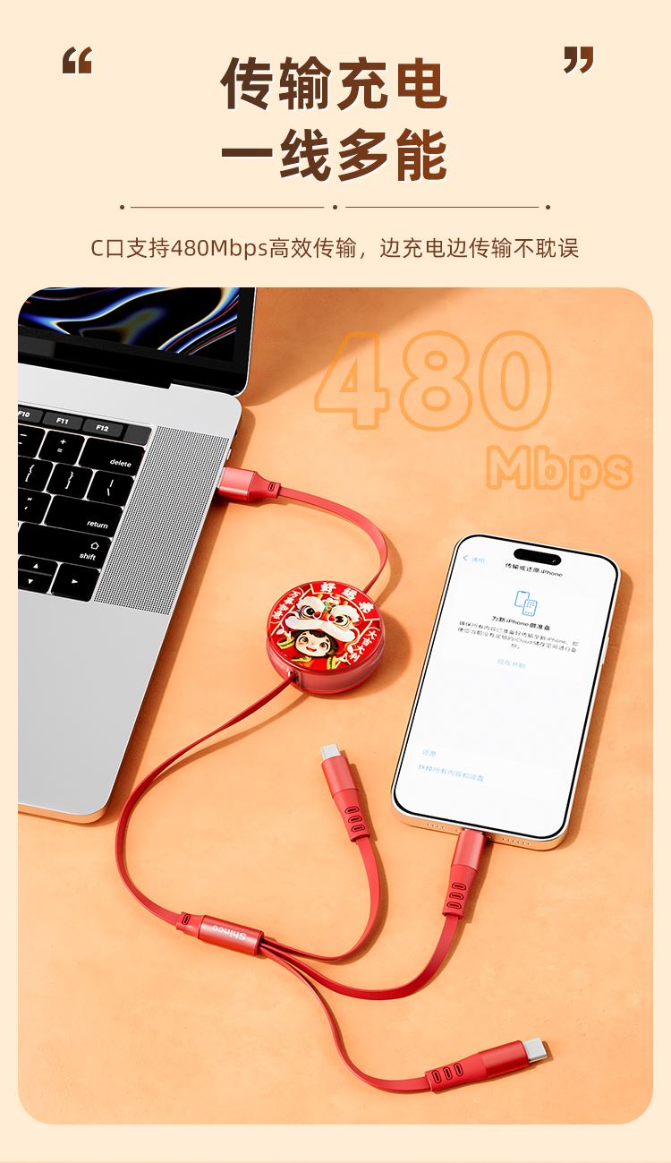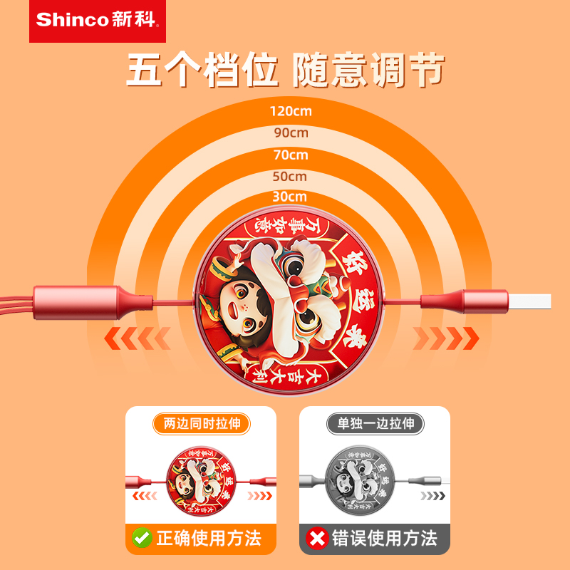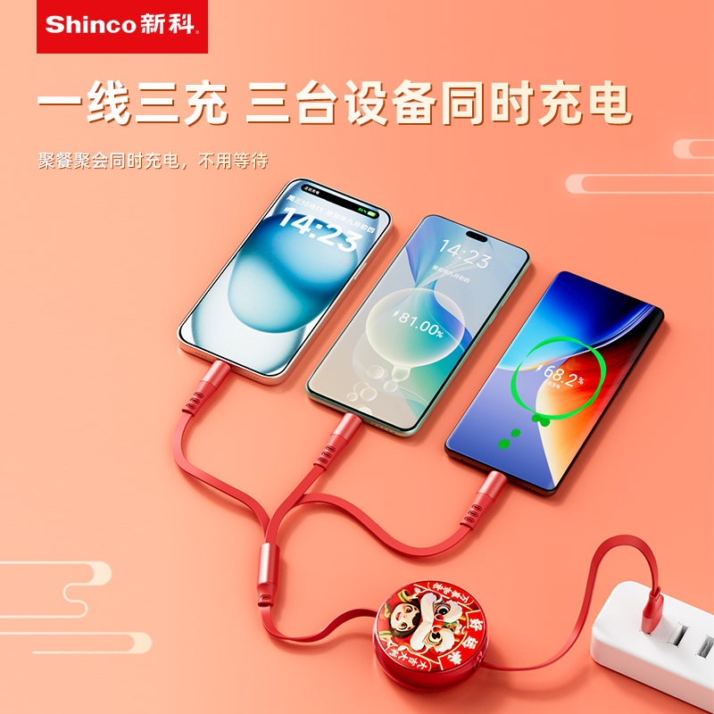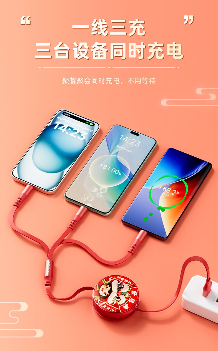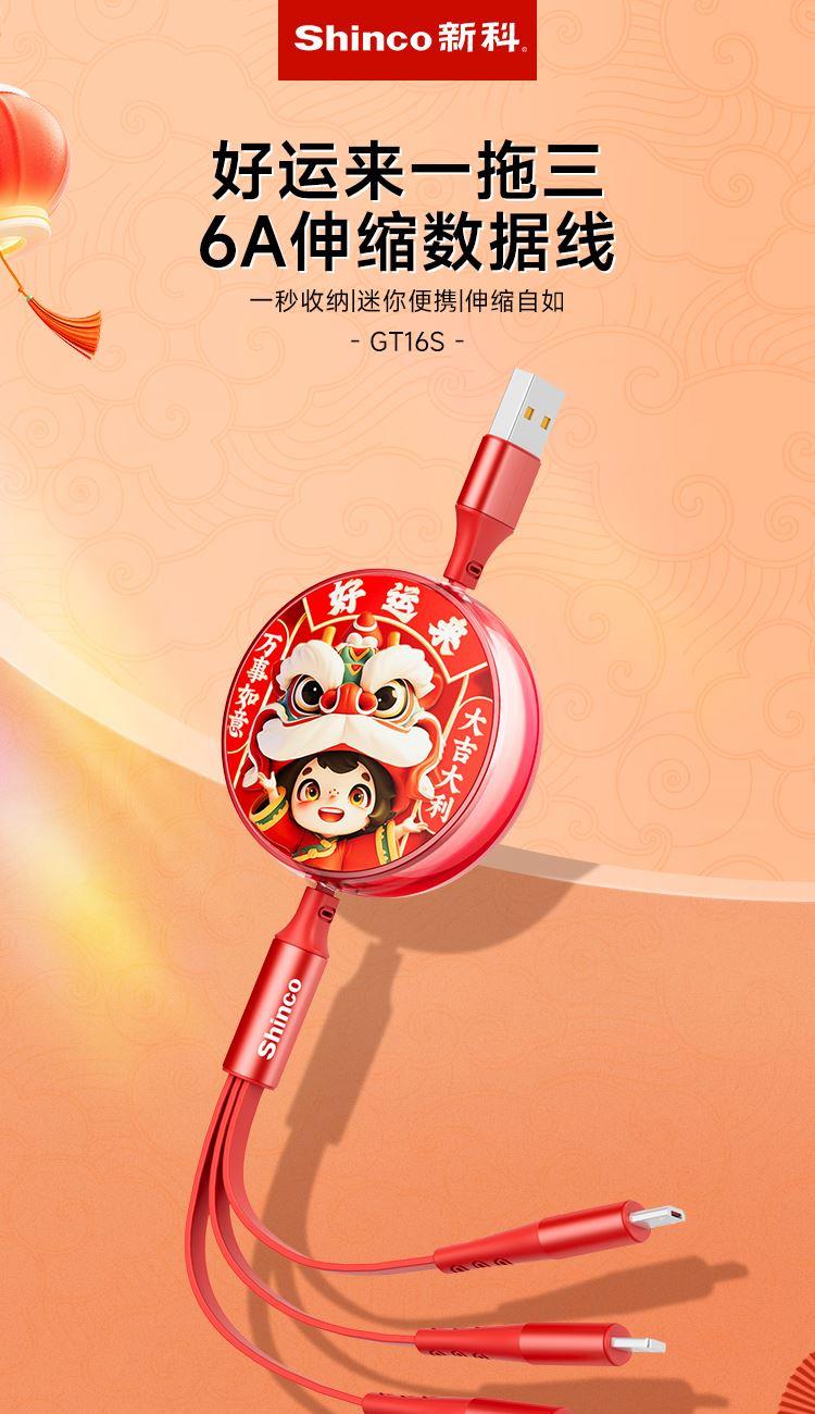 新科6A一拖三伸缩数据线(好运来)GT16S