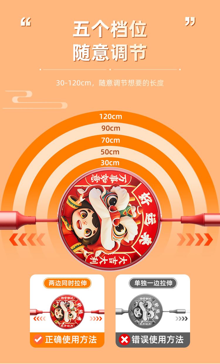 5:五个档位、调节想要的长度、30-120cm,随意调节,以一敌三